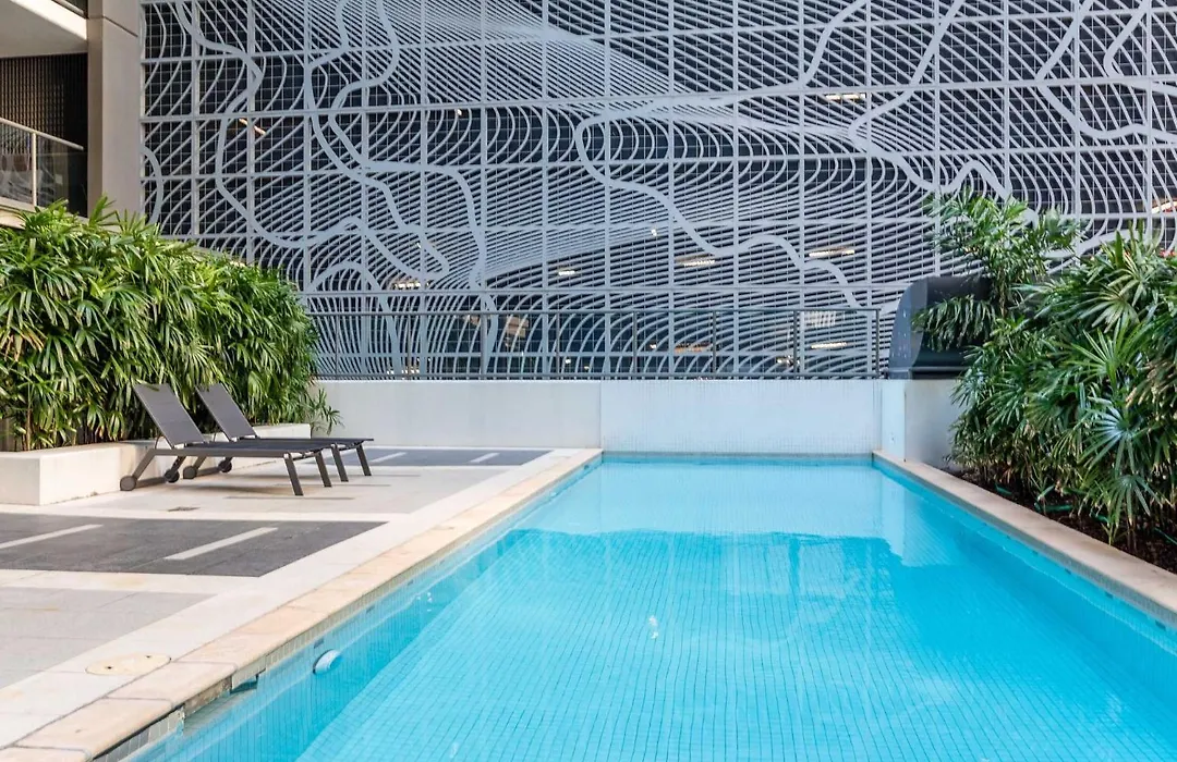 寝室1室のSkyline Viewpoint City Escape Parking - Pool - Gym ブリスベンアパートはブリスベンの住宅街に位置し、ブリスベンシティー植物園から歩いてたった5分です。 ビジネスとレジャーの両方の目的でWi-Fiを利用できます。